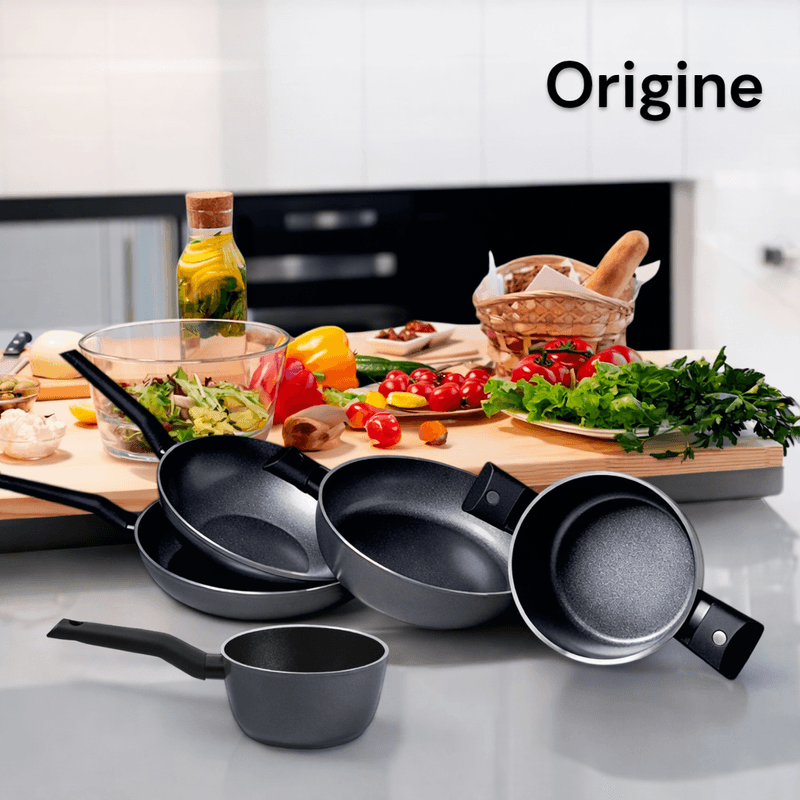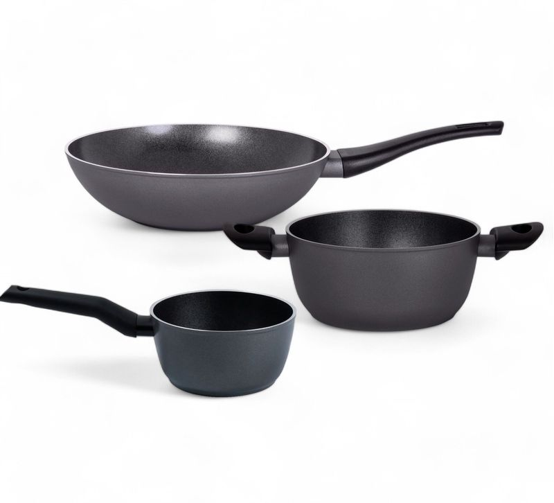 COMBO TVS ORIGINE CACEROLA CON MANGO + CACEROLA CON 2 ASAS + WOK