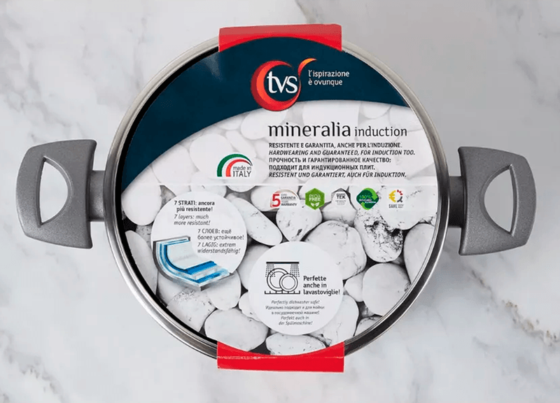 Con revestimiento reforzado con minerales y un nuevo sensor térmico, las sartenes, ollas, sartenes, cacerolas y cazuelas Mineralia TVS garantizan capacidades antiadherentes de larga duración, una cocción fácil y eficiente para el exigente entorno del chef profesional.
