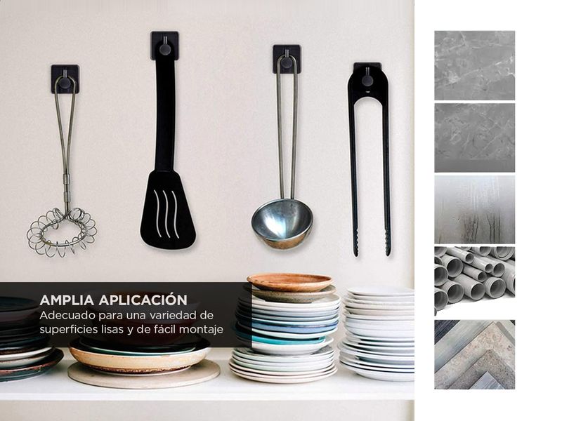 Nuestros ganchos adhesivos son extremadamente versátiles y se pueden utilizar en cualquier habitación de tu hogar. Ya sea en la cocina, baño, sala de estar o dormitorio, estos ganchos te brindarán la solución perfecta para colgar tus utensilios, toallas, llaves y mucho más.