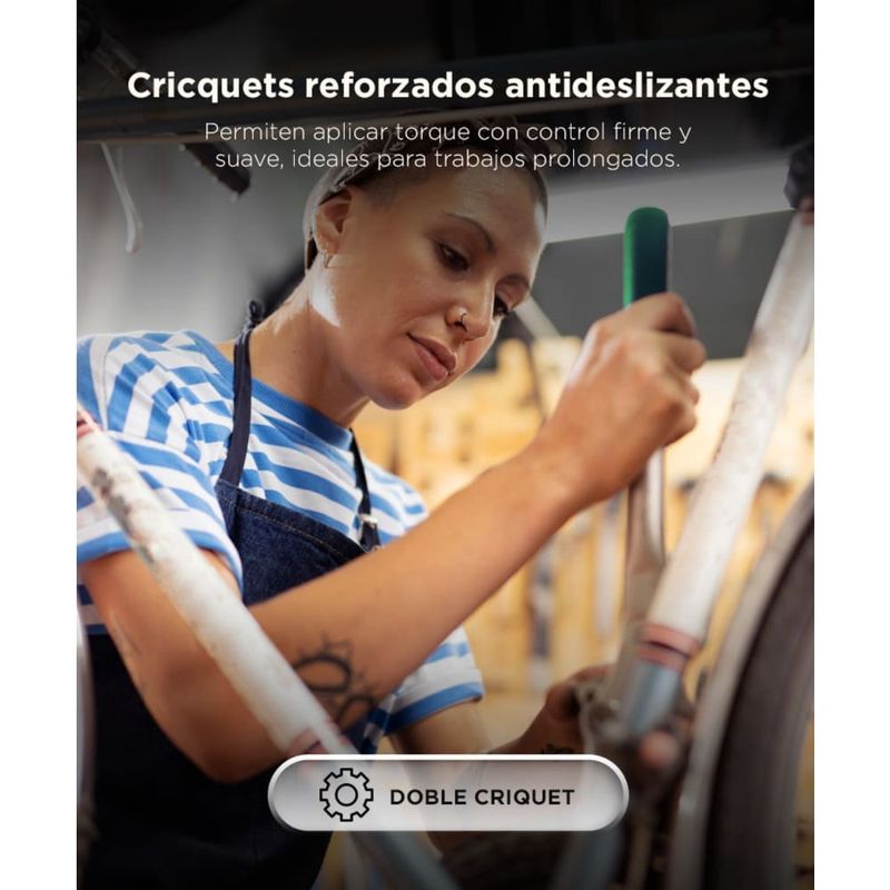 Todas las piezas están fabricadas en acero de alta resistencia que garantiza durabilidad y un excelente desempeño. Los crickets incluyen mango ergonómico para un agarre firme mientras que las extensiones y uniones universales permiten trabajar en áreas de difícil acceso con total comodidad.