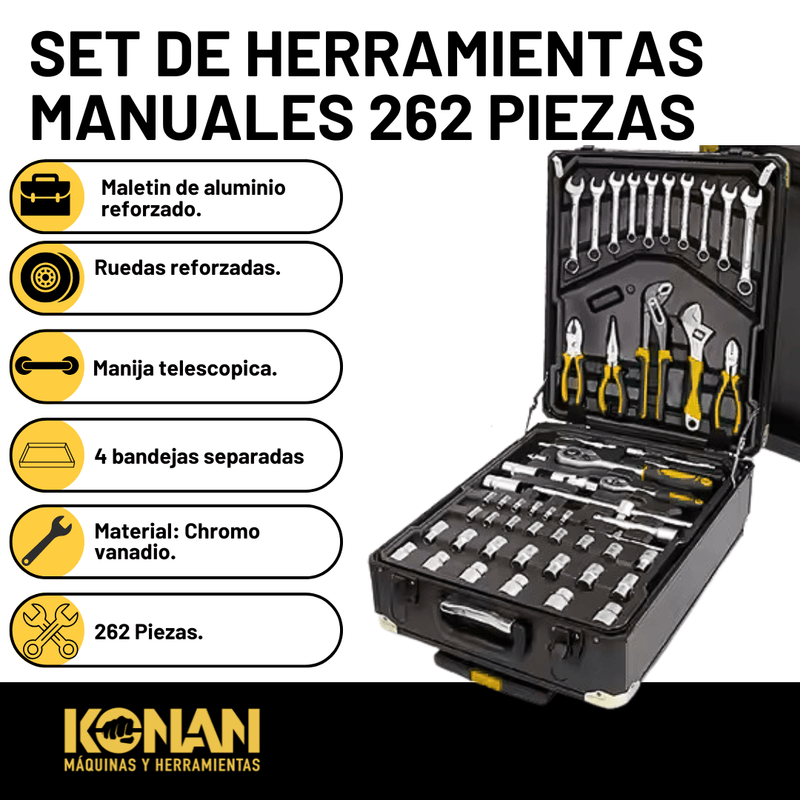 Set de Herramientas Manuales 262 Piezas KONAN con Maletín Rígido