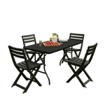 Set De Jardín Con Mesa Plegable Negra Y 4 Sillas Plegables
