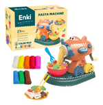 Incluye 23 piezas entre masas de colores y accesorios con temática de cocina, permitiendo crear diferentes comidas y recetas de fantasía.