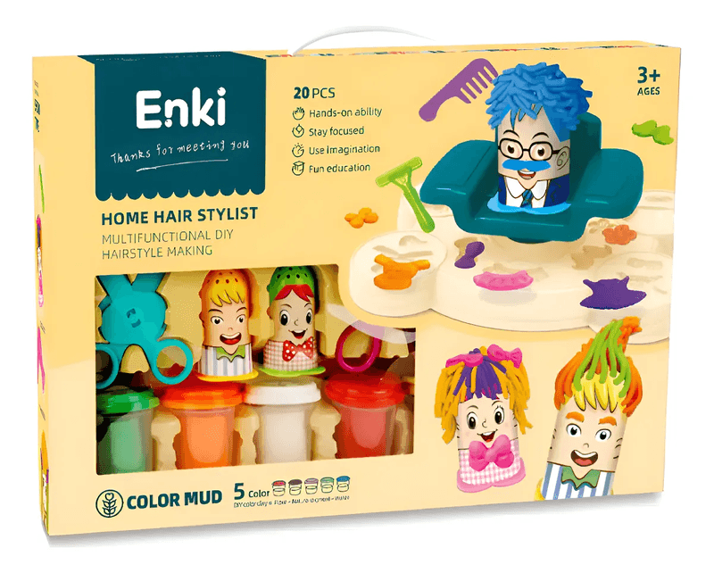 Set de Masas Peluquería 20 Piezas Enki EK6004, un entretenido juego creativo para que los chicos se diviertan jugando a ser estilistas.