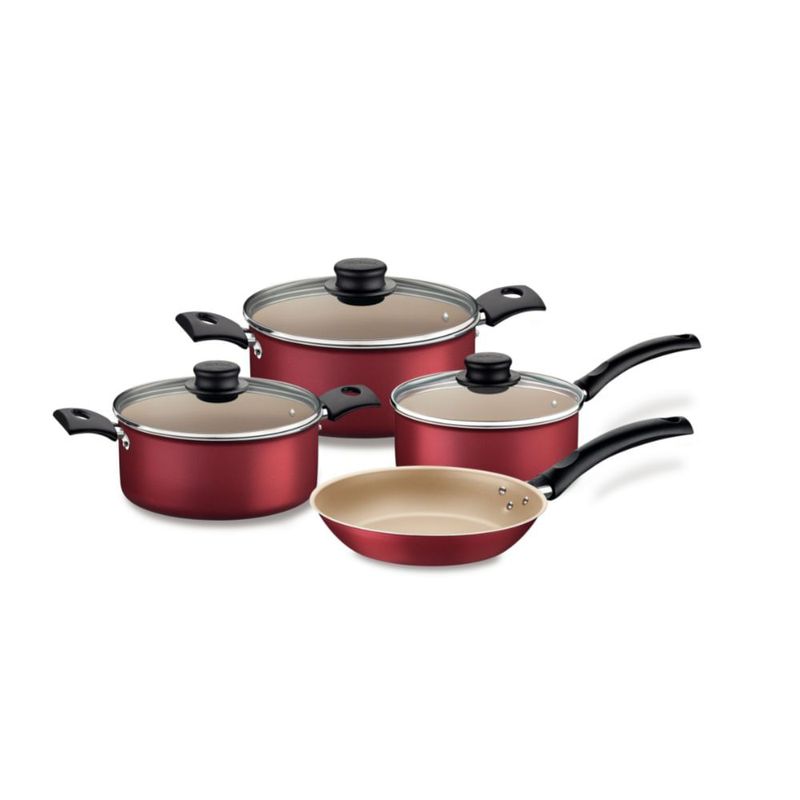 La Línea Turim siempre tiene éxito en su cocina. Además de la practicad de la cocción uniforme, proporcionada por el revestimiento interno y externo en antiadherente Starflon T1, permanecen más bonitas durante más tiempo. Son fáciles de limpiar porque, debido al antiadherente, los alimentos no se pegan. Se pueden usar en cocinas a gas, eléctricas o vitrocerámicas (resistencia eléctrica) y llevarse a lavavajillas. El juego contiene 1 cacerola 2 asas 24cm, 1 cacerola 2 asas 20cm, 1 cacerola c/mango 18cm, 1 sartén 24cm, tapas de vidrio templado