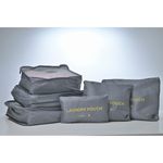 Modelo:GS146 El set GS146 incluye seis organizadores de viaje en distintos tamaños, ideales para mantener tu ropa y accesorios ordenados en la maleta. Fabricados en tela Oxford, poliéster y nailon, están disponibles en colores gris y azul oscuro, siendo prácticos y duraderos para todo tipo de viajes.