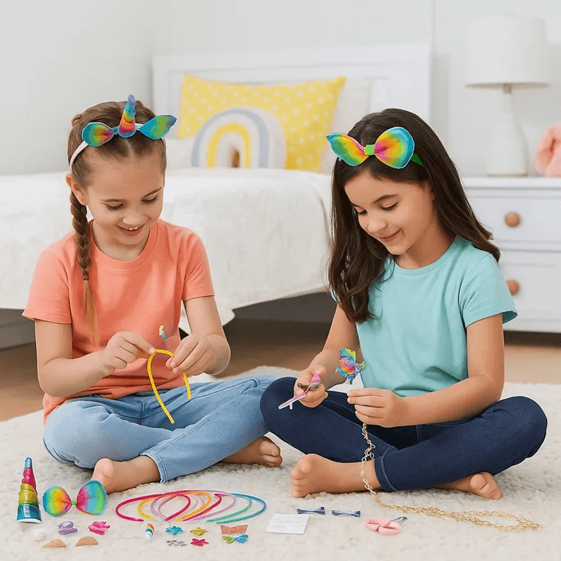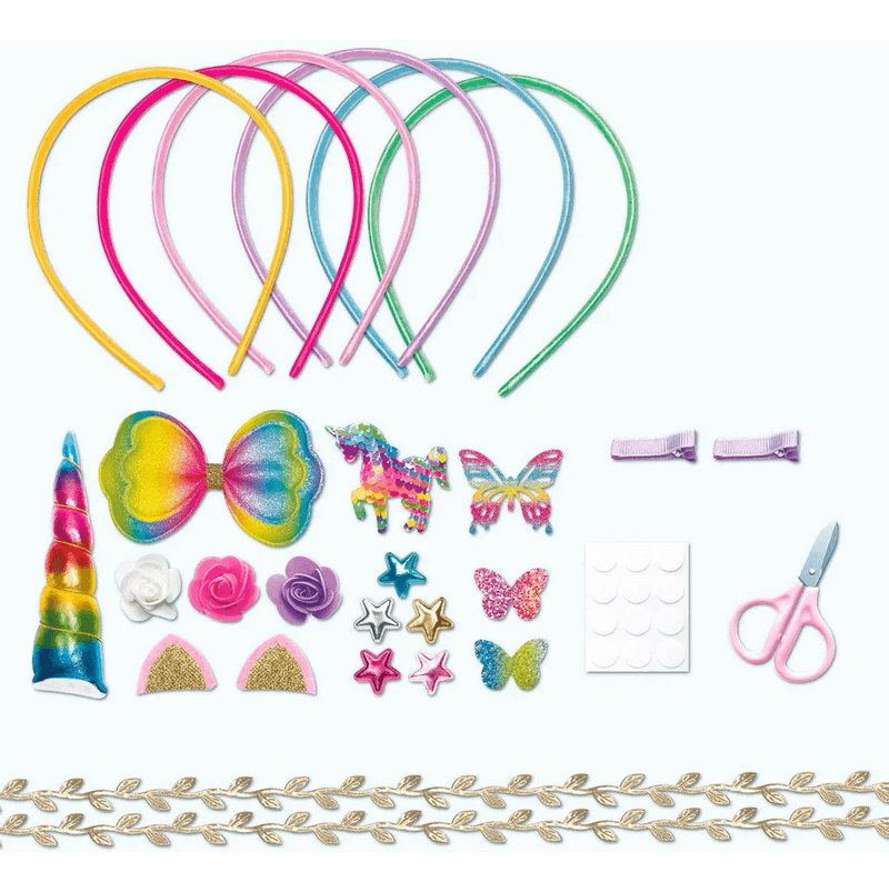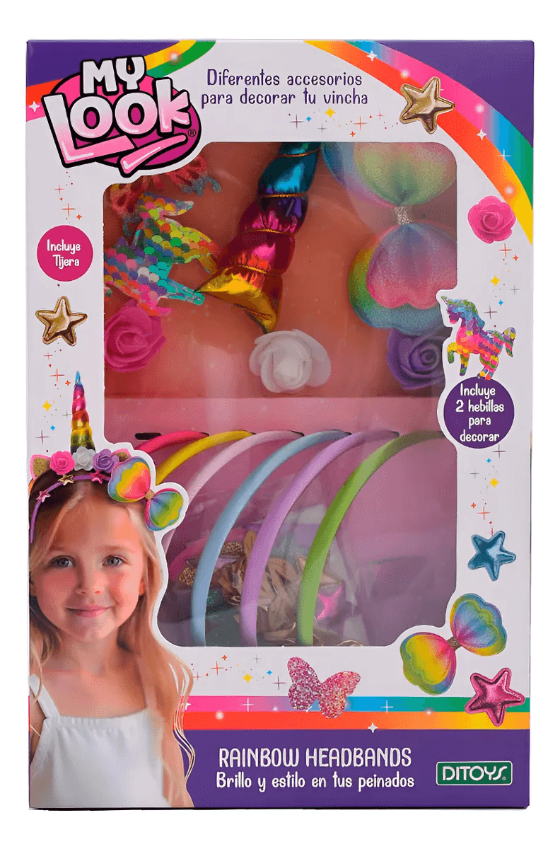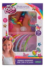 ¡Dale color a tus peinados con el Set My Look Rainbow Headband! Un kit divertido y lleno de estilo para crear looks únicos con una vincha arcoíris y accesorios combinados.