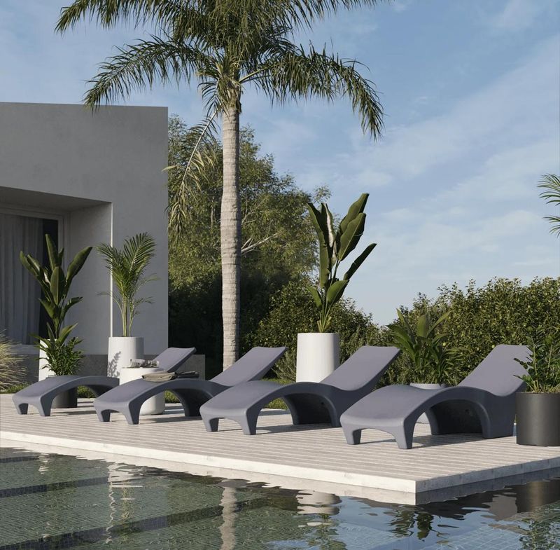 Reposeras de plástico hecha de polietileno de alta resistencia son ideales para su uso en solárium o ambientes húmedos. Este tipo de reposeras están diseñadas con un enfoque minimalista, presentando líneas limpias y sencillas. Su superficie tienen una textura granallada que añade un toque estético y funcional, mejorando el agarre y resistencia a rayaduras.