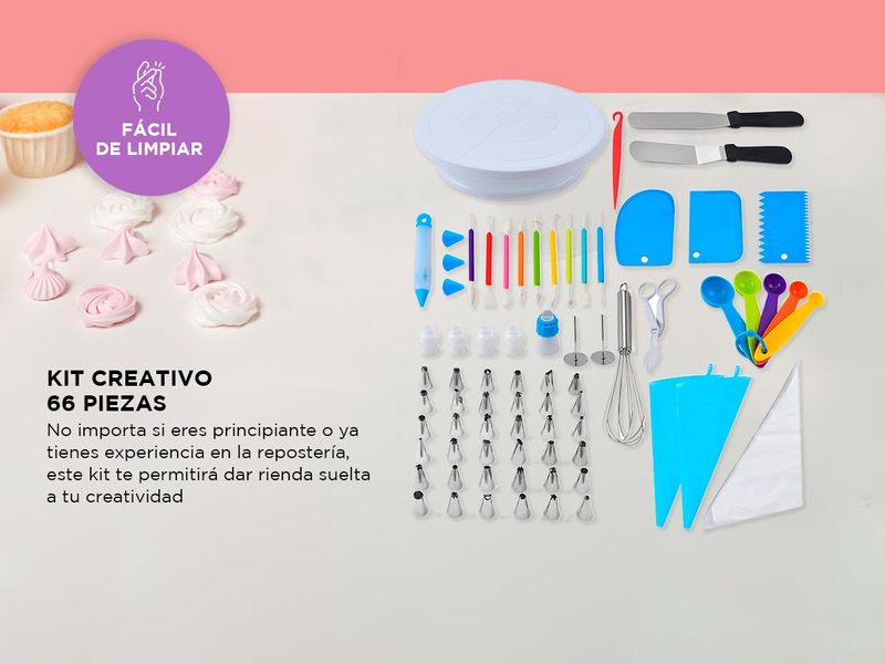 No importa si eres principiante o ya tienes experiencia en la repostería, este kit de 66 piezas te permitirá dar rienda suelta a tu creatividad y preparar deliciosos postres para compartir con tus seres queridos. ¡Atrévete a crear y disfruta de la magia de la repostería con este completo kit!