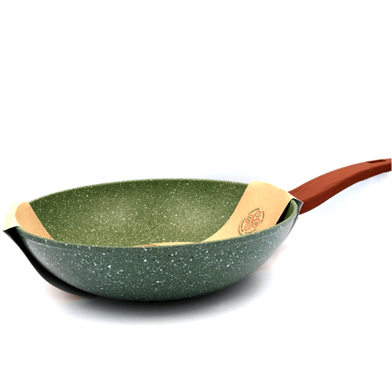 El revestimiento de 5 capas con efecto piedra tiene un acabado de glicerina vegetal libre de OGM que crea una capa antiadherente extra de forma natural .