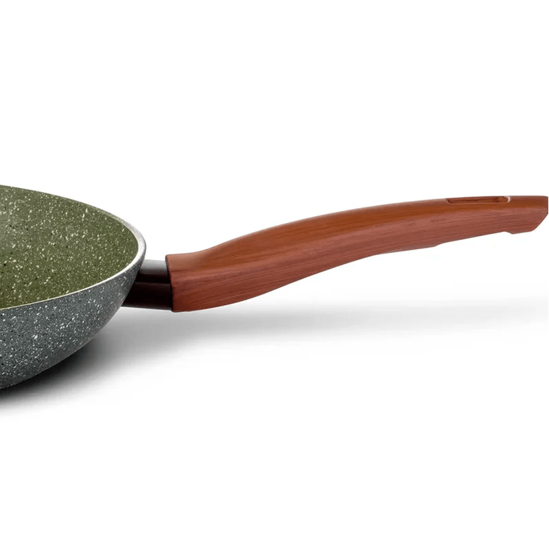 El revestimiento de 5 capas con efecto piedra tiene un acabado de glicerina vegetal libre de OGM que crea una capa antiadherente extra de forma natural .