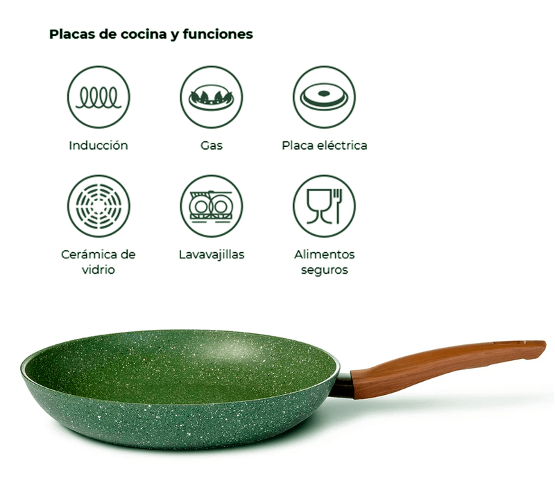Sartén apta para todo tipo de fuegos, incluida inducción.