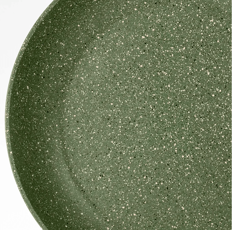 El aluminio utilizado para fabricar el cuerpo de esta sartén es una aleación verde especial que tiene un alto contenido de aluminio reciclado.