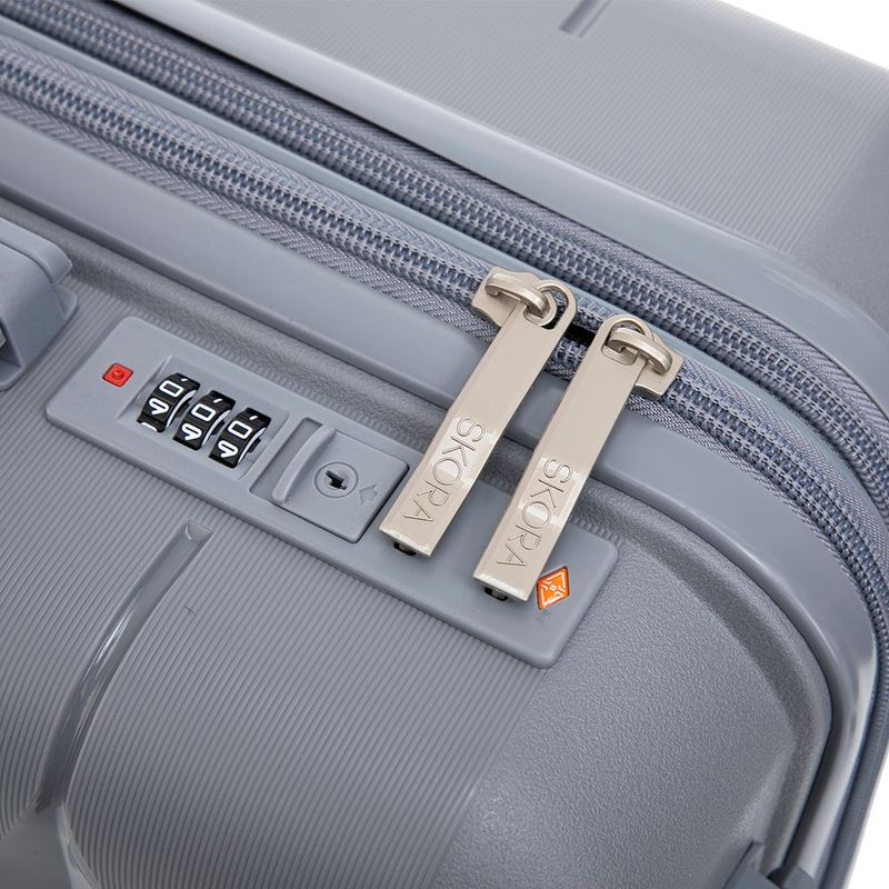Set de valija y beauty case Skora fabricado en polipropileno resistente, ideal para viajes cómodos y organizados.