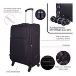 Equipada con cuatro ruedas giratorias, este set garantiza una movilidad ágil y eficiente en aeropuertos y estaciones. Además, las correas interiores aseguran que tus pertenencias permanezcan en su lugar durante el traslado, brindando tranquilidad en cada paso del camino.