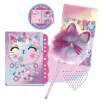 SET DIARIO ÍNTIMO GATITOS CON CLAVE + LAPICERA POM POM Y STICKERS