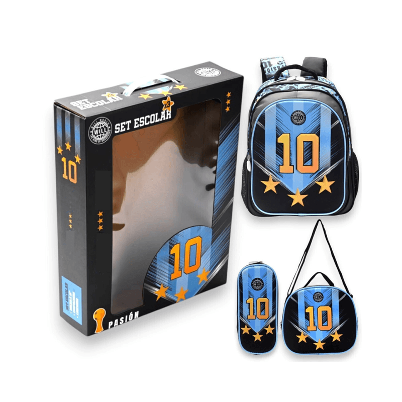 - Set escolar 3 en 1 con diseño Jugador 10.