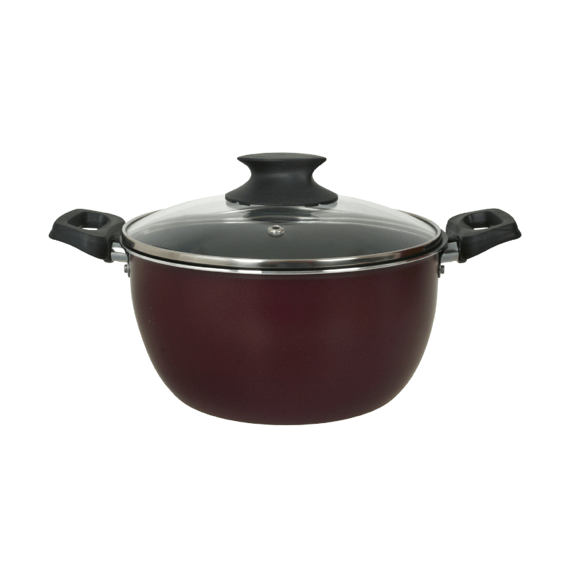 1. Cacerola de 20 cms con tapa de vidrio templado y orificio para salida de vapor - Capacidad : 2,8 L / Diámetro: 20 cm / Largo: 31cm / Altura: 10,5 cm - Dos asas de Baquelita negra