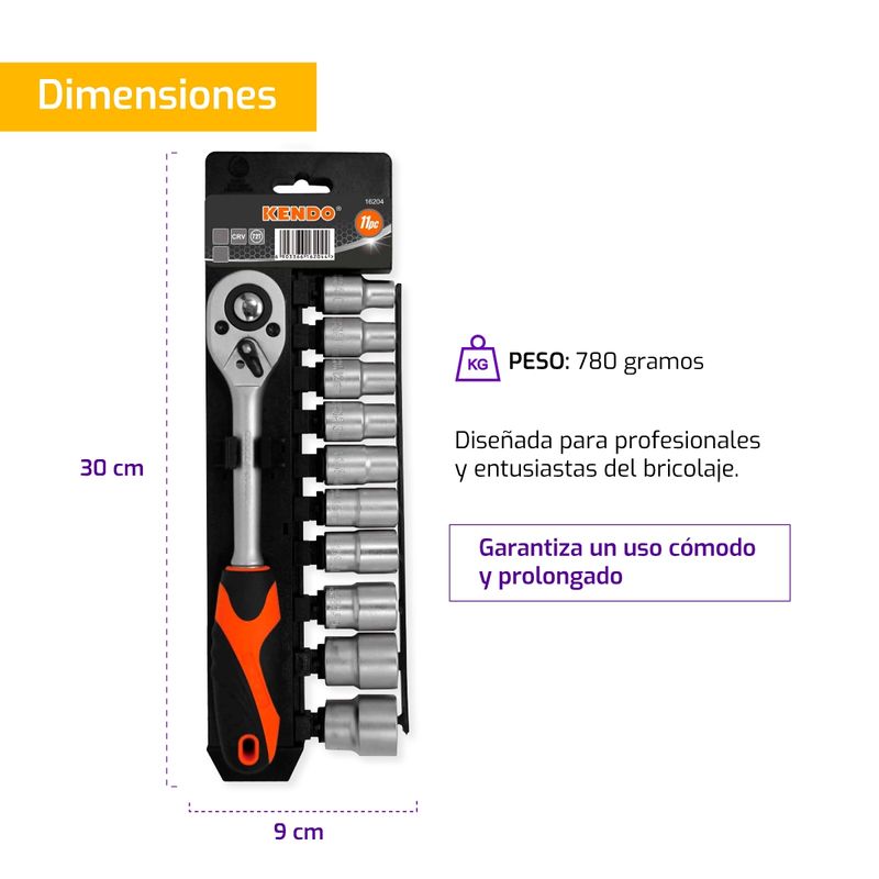 Set Herramientas 11 Piezas Llave Crique 3/8 + Tubos