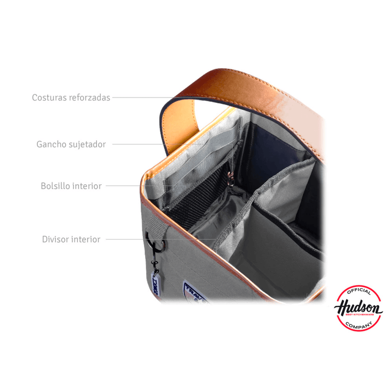 El canasto cuenta con un divisor interior para separar el termo del mate y evitar golpes. Además, tiene un bolsillo multifunción perfecto para guardar yerba, bombilla y otros accesorios pequeños.