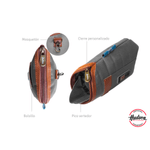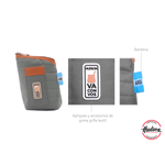 La yerbera cuenta con un pico vertedor que permite servir la yerba de forma precisa, evitando que se caiga y ensucie. Incluye un bolsillo lateral práctico para guardar tus accesorios (azúcar, edulcorante, etc.) y un cierre firme con aplique de goma para mantener la frescura de la yerba.