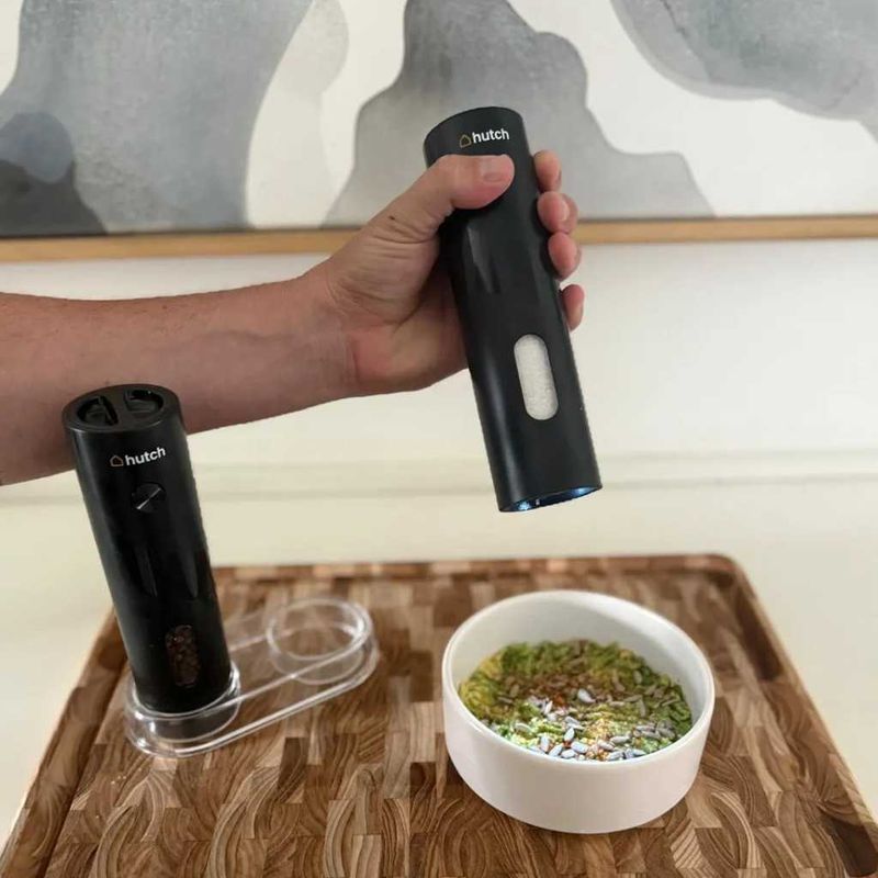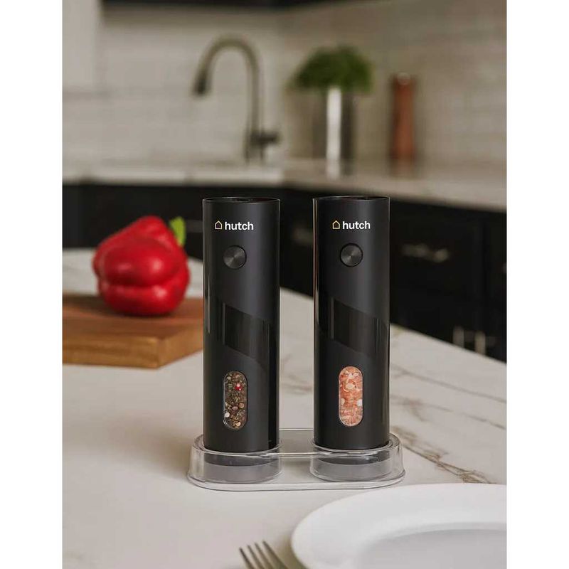 Disfrutá el set de molinillos eléctricos Hutch con luz y mecanismo cerámico. Mejorá tu cocina con diseño y practicidad. ¡Llevá innovación a tu mesa!