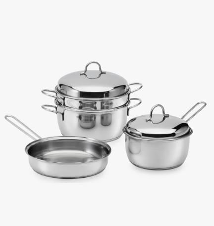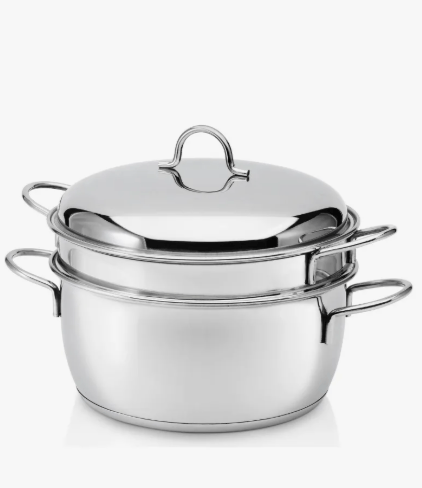 Sus accesorios de acero inoxidable permiten su uso seguro en el horno, brindando una versatilidad inigualable. El set incluye una práctica vaporiera de 3 piezas, una cacerola con mango y una sartén, cubriendo todas tus necesidades con estilo y calidad argentina.