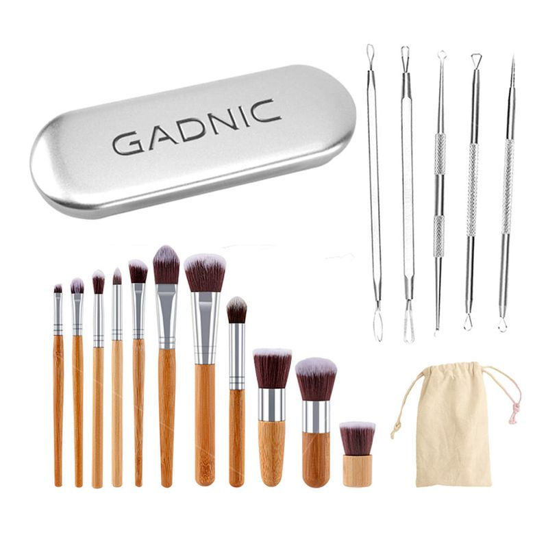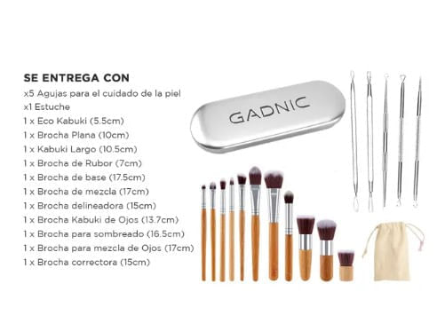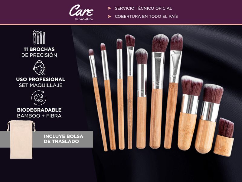 Brochas para Maquillaje Gadnic Bambú x 11 + Bolso Transporte - MAL00006