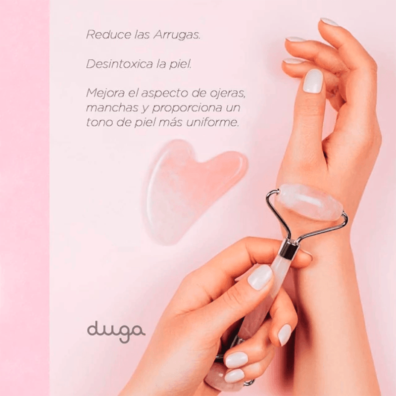 Rodillo Masajeador Facial + Gua Sha mejora el aspecto de bolsas. ojeras. manchas y proporciona un tono de piel más uniforme.