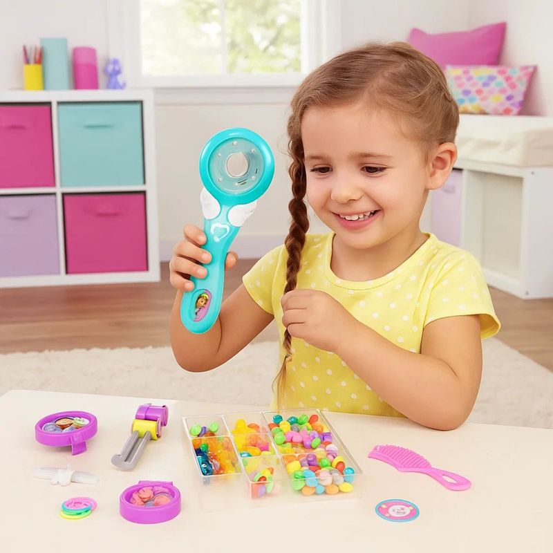 - Incluye peine, gemas decorativas, 3 carretes de hilo y banditas elásticas