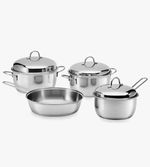 Renovada línea de acero inoxidable, apta para cocinas de inducción.
