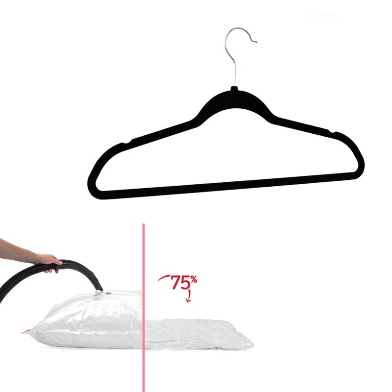 120 PERCHAS COLOR NEGRO, NATURAL O GRIS CLARITO MARCA: COMPACTOR Perchas ultrafinas, ultralivianas, anti deslizantes y super resistente. OPTIMIZAN EL ESPACIO EN TU PLACARD. No marcan la ropa. Sirve para todo tipo de ropa. Ancho : 44.5 cm Altura: 22.5 cm Gancho de metal reforzado. Cuerpo de la percha revestida en terciopelo. CAJA CERRADA X 120 UNIDADES + GRATIS : 1 BOLSA AL VACIO TAMAÑO MEDIO MEDIDAS : 55 X 90CMS MARCA : ACTUEL OPTIMIZA EL 75 % DEL ESPACIO. PROTEGE DE ACAROS, BICHOS, HUMEDAD. MANTIENE AL VACIO. MATERIAL DE LA BOLSA : NYLON Y POLIETILENO CON DOBLE ZIP. IDEAL PARA PONER EN LA VALIJA Y LLEVAR DE VIAJE O SIMPLEMENTE GUARDAS LAS PRENDAS EN EL ROPERO. MODO DE USO : COLOCAR LA ROPA DENTRO DE LA BOLSA, CERRAR EL CIERRE ZIP Y ENROLLAR PARA SACAR EL AIRE.... SALE EL AIRE DEL INTERIOR , LA ROPA QUEDA AL VACIO, LIMPIA Y OPTIMIZANDO EL ESPACIO. ES REUTILIZABLE.