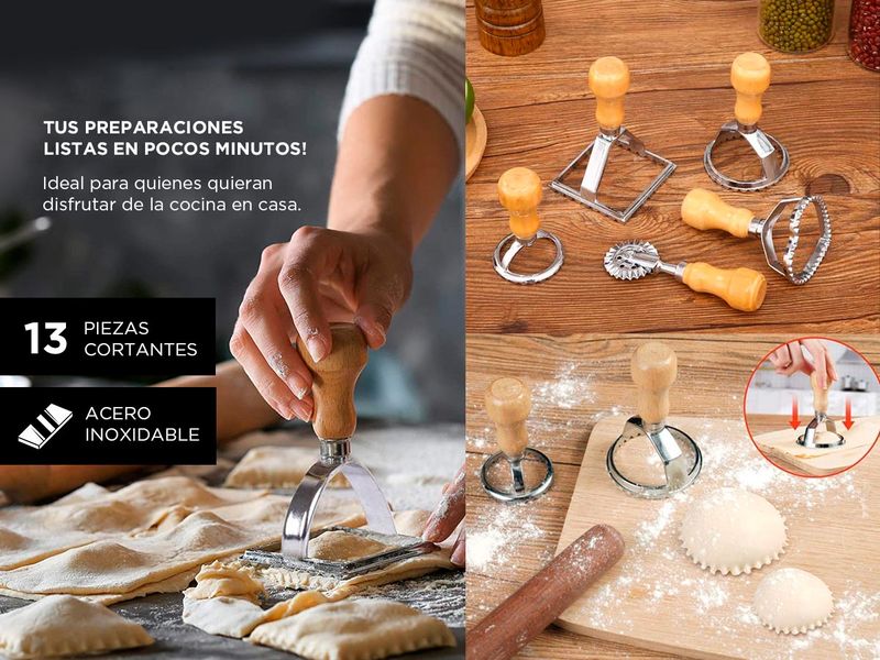 Este set super completo te permitira cortar la masa de pasta rellena, dumpings, galletas, pasteles, fideos ¡y más!