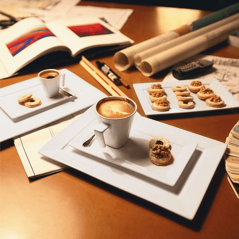 La audacia y la sofisticacion pueden ir de la mano es lo que nos muestra la coleccion rectangular con su formato innovador que sorprende y encanta a la hora de comer. El color blanco es discreto y hace que la comida se destaque al servilrla en la mesa. El plato deja espacio para agregar un rico acompañiamiento a la infusion.
