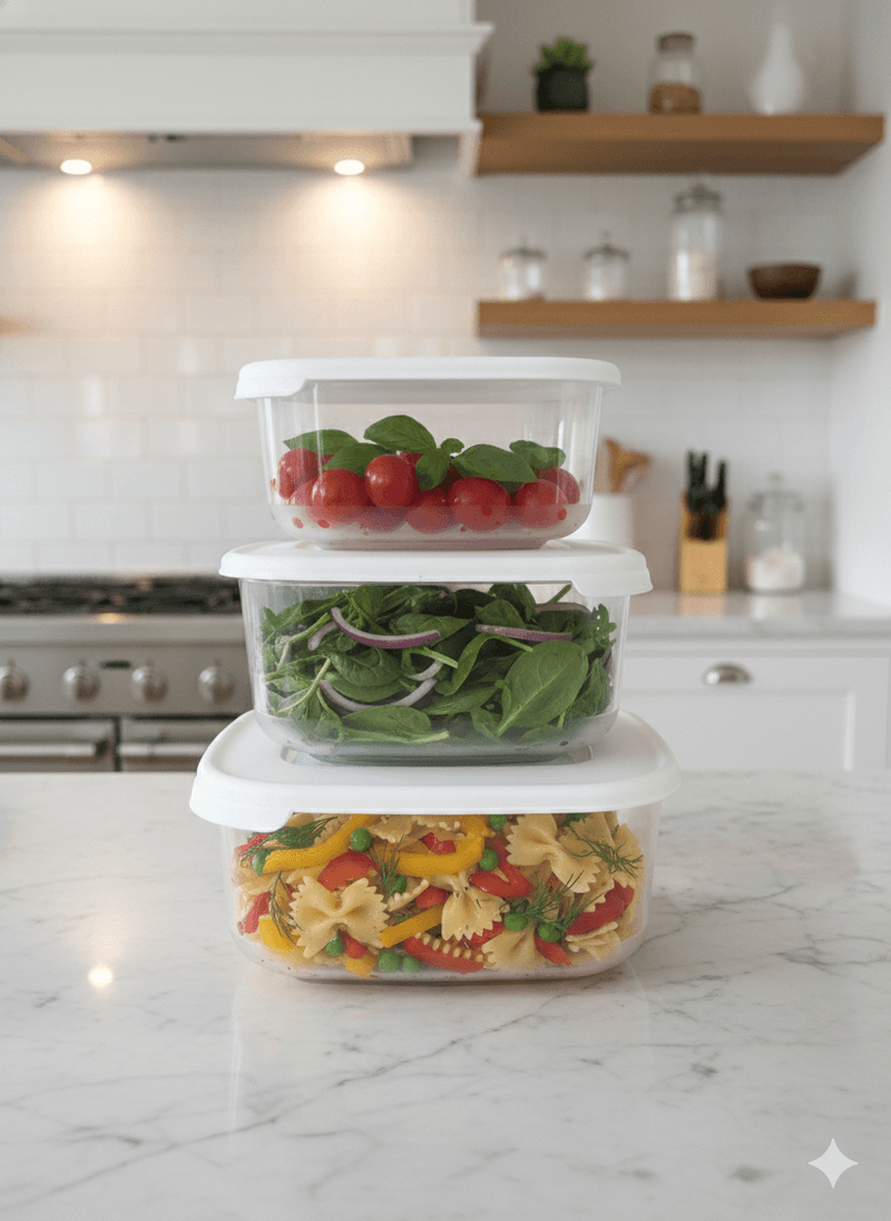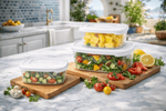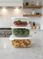 Los recipientes Family-Food para microondas y congelador son perfectos para preparar comidas y guardar las sobras de forma segura. Gracias a la práctica pestaña de la tapa, se abren rápida y fácilmente, minimizando el riesgo de derrames. Apto para lavavajillas, los recipientes de esta gama son una solución práctica e inteligente para ordenar el refrigerador y el congelador, y para llevar refrigerios y comidas preparadas al colegio o la oficina. El juego también está disponible en versión rectangular.