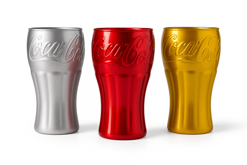 Acabado metalizado con efecto brillante , que resulta el relieve del logo COCA COLA y le otorga un aspecto moderno y sofisticado. Brillo intenso que resalta con la luz y aporta un estilo moderno y coleccionable.