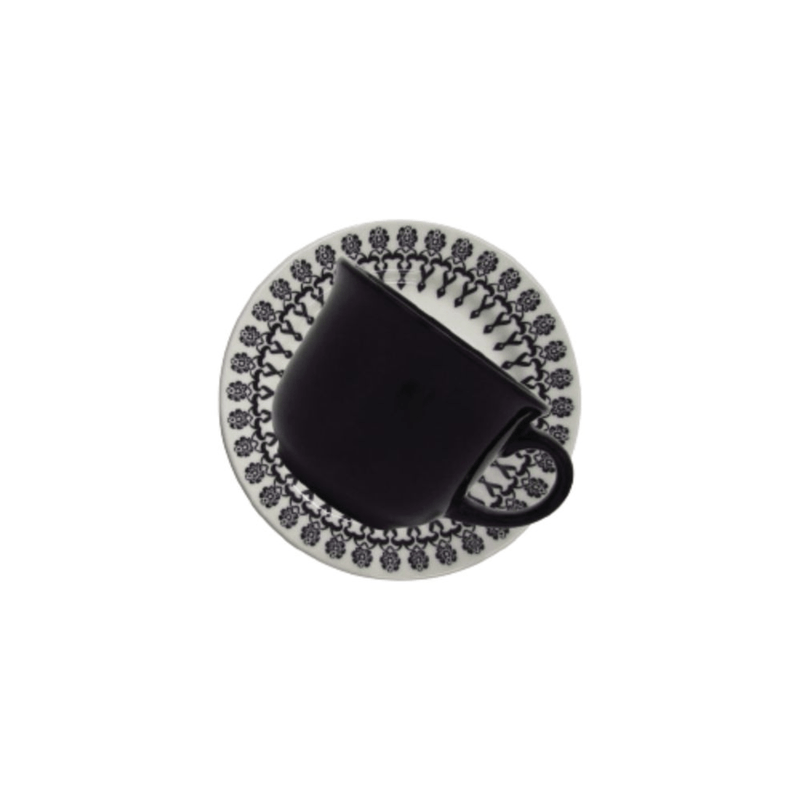 La copa negra, sin decoracion, crea una hermosa composicion con las demas piezas combinando elegancia y alegria en un solo juego!