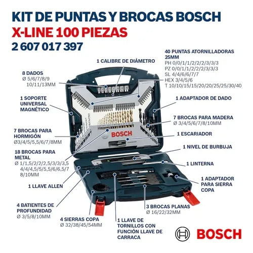 SET X-LINE BOSCH CON 100 ACCESORIOS PERFORAR Y ATORNILLAR