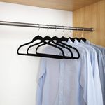 El acabado de terciopelo añade un toque elegante a tu closet. Es importante descolgar las prendas de manera delicada.