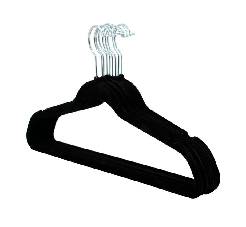 Set de ganchos con acabado de terciopelo perfectos para colgar abrigos, pantalones, blusas, vestidos y demás prendas sin que estas resbalen. Por su acabado en terciopelo es antideslizante y a su vez cuida las prendas. Cuentan con una función giratoria que por su versatilidad permite colocar la ropa de una manera más cómoda dentro del armario.
