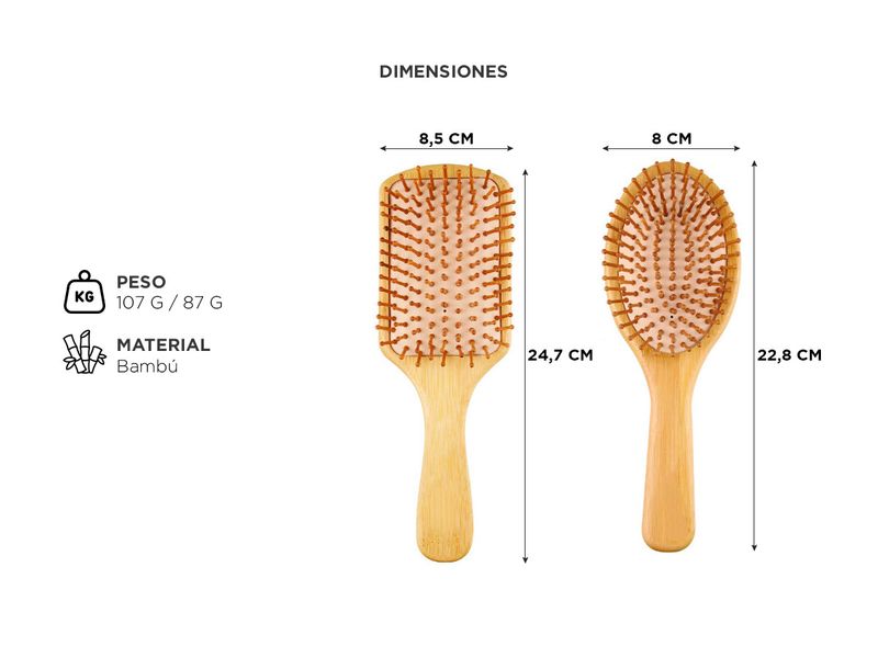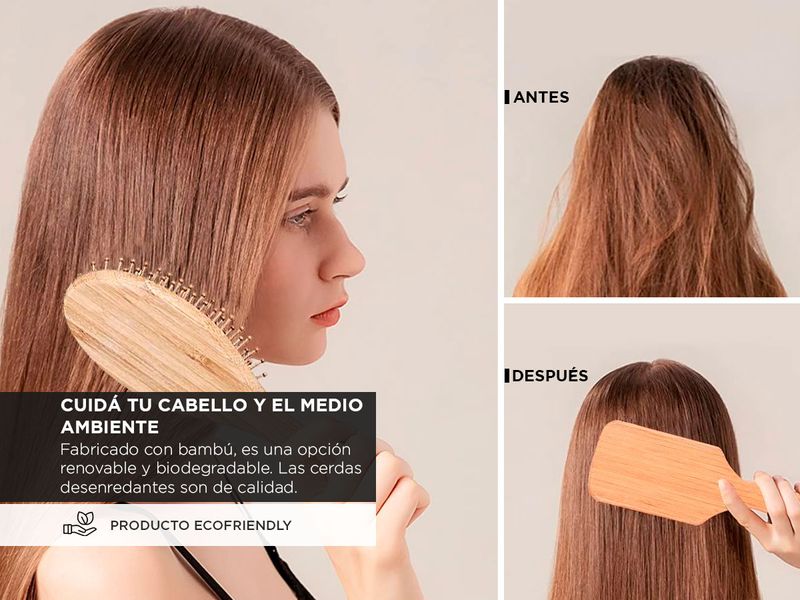 Cuida Tu Cabello: Nuestro set de cepillos de bambú ayuda a cuidar tu cabello, minimizando el daño y manteniendo la salud de tu melena.