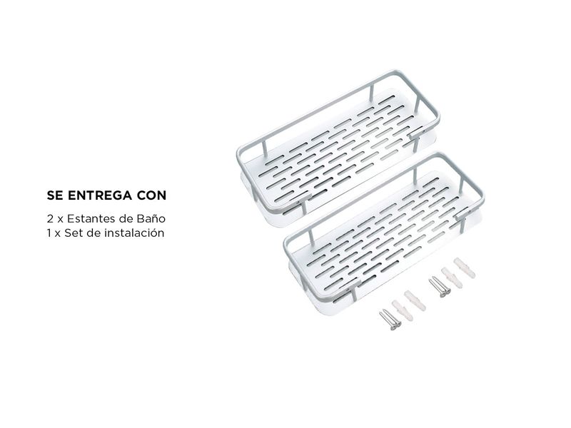 Diseñados especialmente para aprovechar al máximo el espacio, estos estantes rectangulares te brindarán una solución eficiente para mantener todos tus artículos de baño a mano y perfectamente organizados. Olvídate del desorden y disfruta de la comodidad que te ofrece este pack de dos estantes.