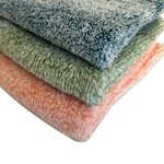 Este trío de paños de microfibra con textura coral fleece es lo más en suavidad y eficacia. Cada set incluye tres colores seleccionados (verde, durazno y azul), pensados para que puedas diferenciar usos (cocina, baño, vidrios).