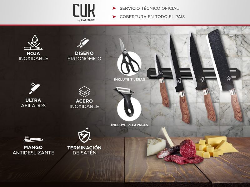 Set Gadnic x4 Cuchillos de Cocina Con Mango Antideslizante + Pelador +Tijera - KNIFE003
