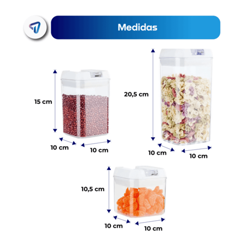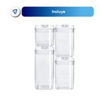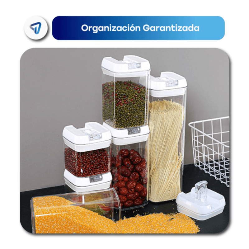 El set de contenedores herméticos WAGGS FRAK04 incluye cuatro recipientes de 0.5 L, 0.8 L (x2) y 1.2 L, ideales para almacenar alimentos secos como cereales, galletitas, granola o legumbres. Fabricados en materiales resistentes y libres de BPA, cuentan con cuerpo transparente para identificar fácilmente el contenido y tapas blancas con cierre a presión que garantizan un sellado eficaz, preservando sabor, textura y frescura por más tiempo. Apto para heladera y despensa, fácil de limpiar y pensado para optimizar espacio, este kit combina practicidad, seguridad y diseño para mantener tu cocina organizada.