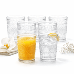 Eleva tus momentos de celebración con el set de vasos de vidrio labrado. Diseñados para quienes aprecian el toque vintage, cada uno de los seis vasos tiene una capacidad de 300 ml, perfectos para servir tragos y bebidas frías. Su diseño distintivo, con un hermoso labrado, añade un toque de elegancia a cualquier mesa o evento.