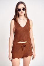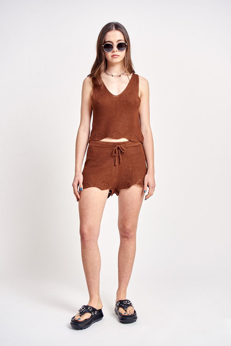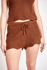 Short en hilado de algodon, con terminacion ondulada en bajo. Cintura con elastico interno y cordon en la misma calidad para ajustar