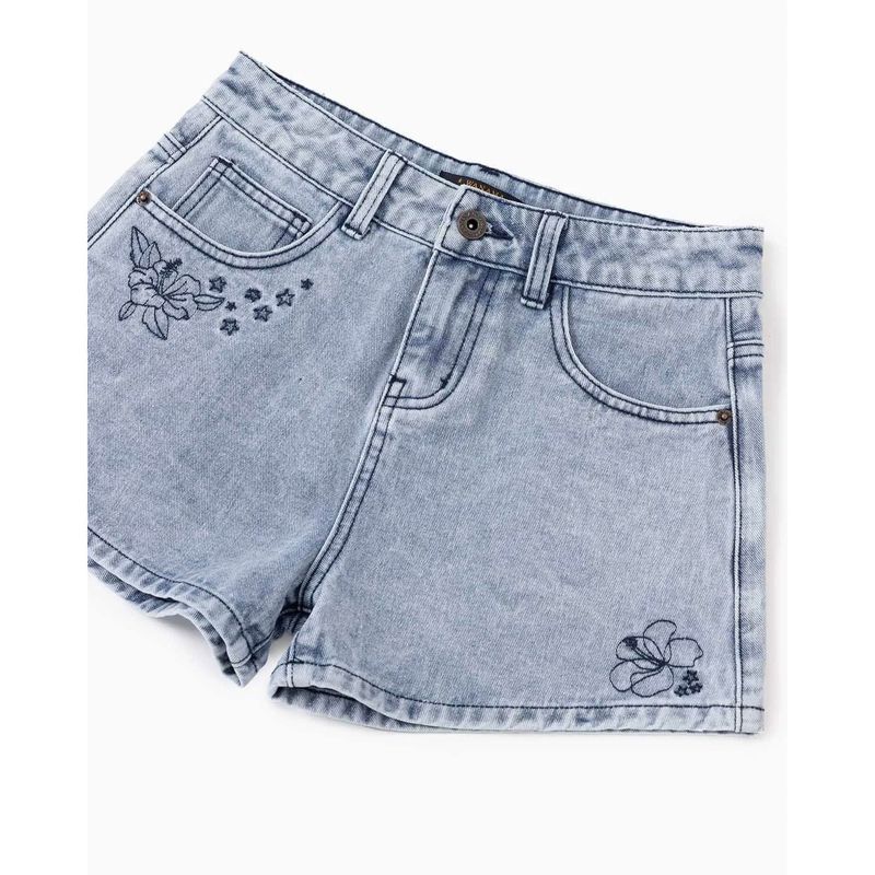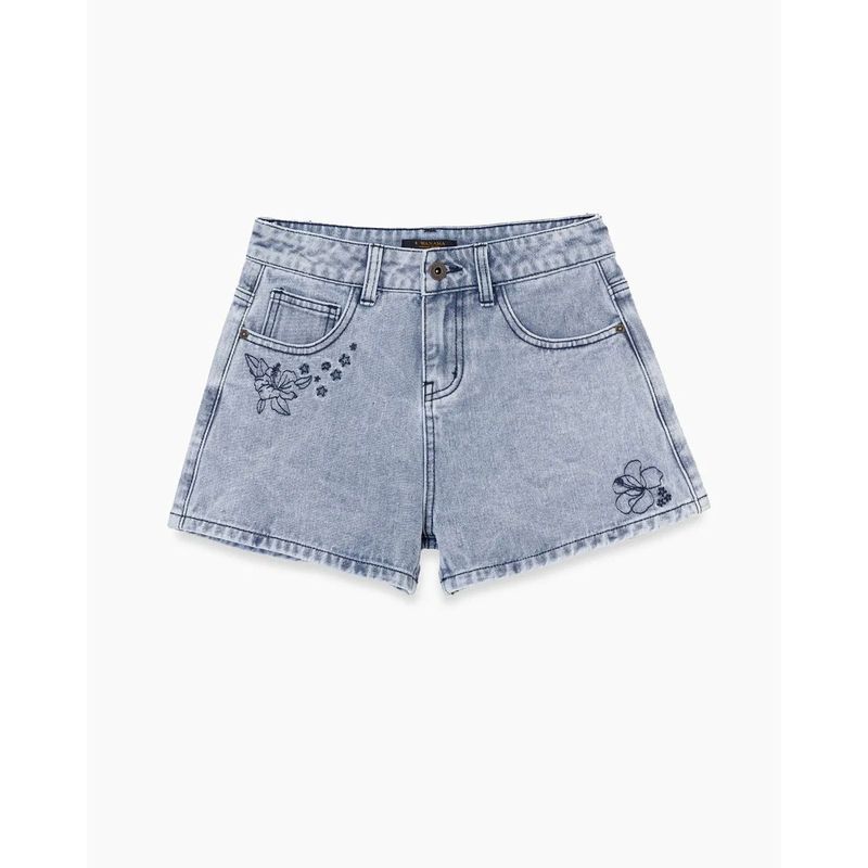 Short cinco bolsillos confeccionado en jean 100% algodón. Posee presillas en cintura y acceso a la prenda mediante cierre y botón metálico. Cintura con elástico con ojal interno hasta talle 8 inclusive, que se ajusta mediante botones. Calce relajado. Tiene bordado especialmente diseñado para la capsula Blossom. Lavado claro. Es un ítem ideal para armar tus looks este verano.
