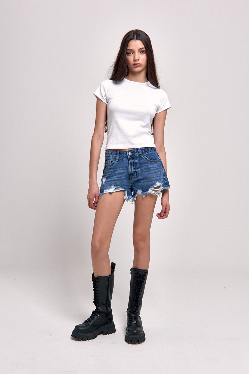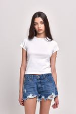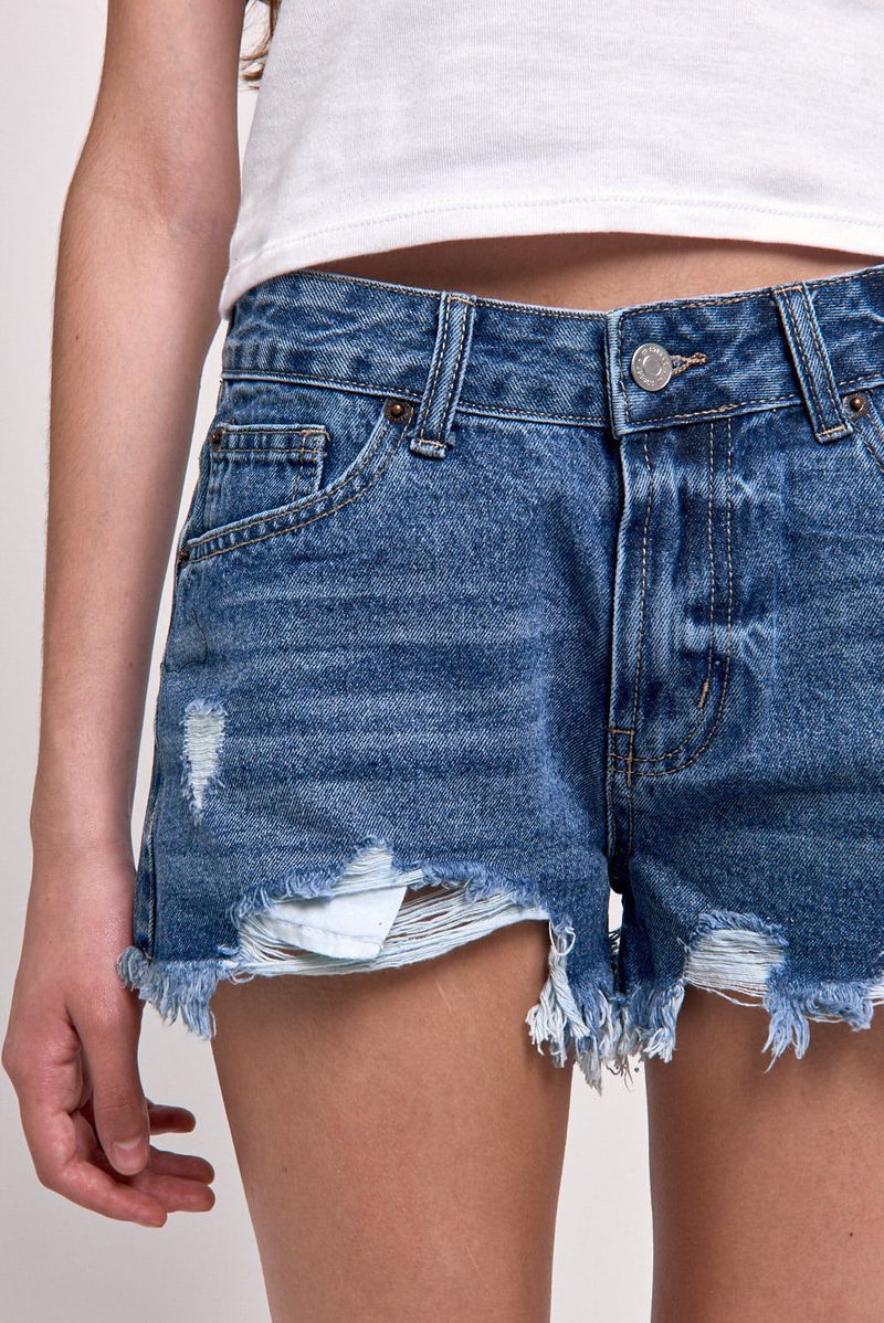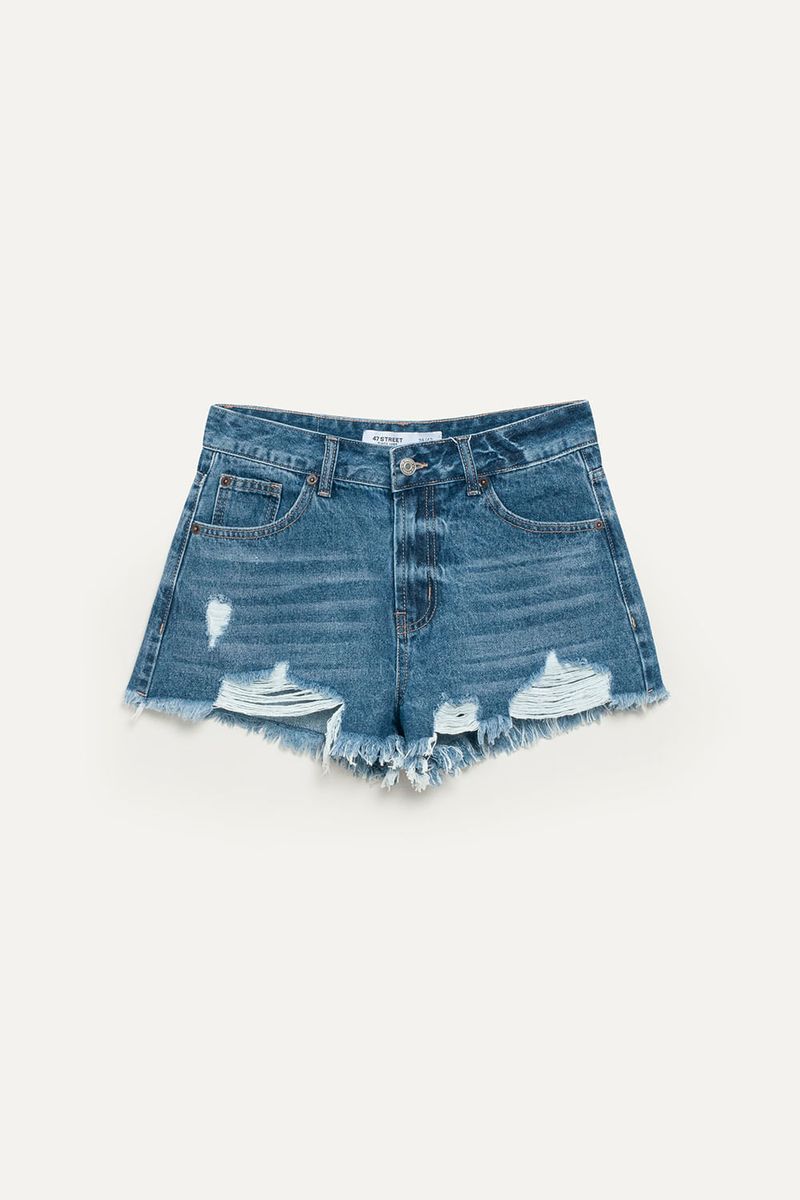 Short denim de 5 bolsillos con calce relajado y terminación desflecada, intervenido con algunas roturas. Botones y remaches con logo de la marca refuerzan su identidad. El proceso de lavado es artesanal, por lo que cada prenda es única. Perfecto para looks de día con remeras básicas o para la noche con tops ajustados y camperas.