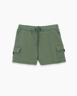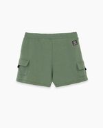 Short cargo confeccionado en rustico liso. Posee recortes frontales y bolsillos laterales. Bolsillos cargo con tapa con detalle de cinta . Calce relajada. Cintura con elástico interno y cordón. Es un ítem que no te puede faltar este verano.